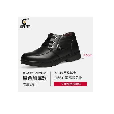 厨王皮鞋男防滑防水厨房厨师专用鞋 黑色加绒加厚皮鞋