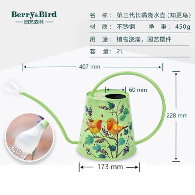 | 包装清单: | Berry&Bird 长嘴浇花水壶家用花卉盆栽多肉洒水壶高颜值园艺摆件2L 长嘴2L洒水壶-知更鸟+花洒头 |