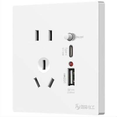 国际电工 86型五孔USB+type-c快充插座面板开关带USB接口手机充电插座 USB+Type-C五孔【20W】