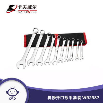 | 包装清单: | 卡夫威尔 汽修铬钒钢梅花开口两用扳手组 机修开口扳手套装 呆扳手组套 10件套两用扳手组 WR2987 |
