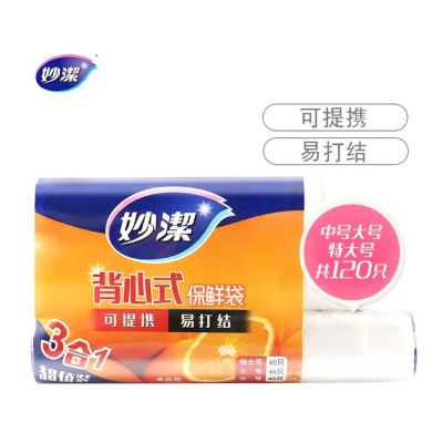 | 包装清单: | 妙洁 MBRV3 手提背心式 保鲜袋组合装 中大特大号 各40只 共120只 * 1 |