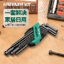 绿林(GREENER)内六角扳手套装自动组合六棱 战舰款9件套【发黑】特长-球