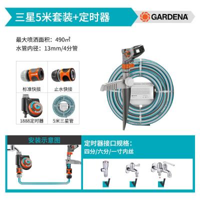 嘉丁拿(GARDENA) 地插式摇臂喷头360度自动旋转喷灌园林浇水洒水器淋菜 10米四分管套装+自动浇花定时器 10米四分管套装+自动浇花定时器