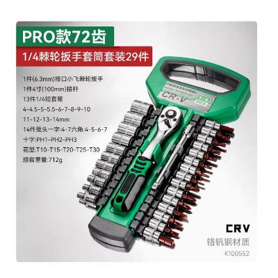 棘轮套筒扳手工具套装组合【断裂包赔】弯柄72齿 1/4小飞29件套