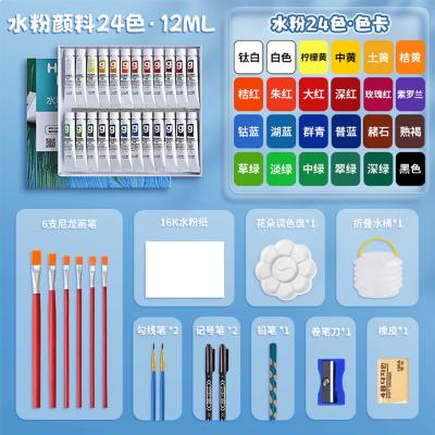美邦祈富 水粉颜料儿童无毒水彩画套装 水粉24色12ml 16件 轻松水洗