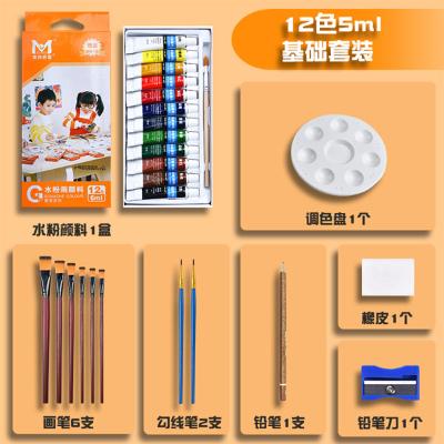 美邦祈富 水彩水粉颜料套装 初学者小盒便捷画画管状颜料可水洗 水粉12色5ml 基础套装