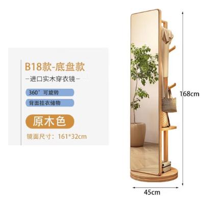 商品名称:藤印象 全身镜 落地镜 可旋转移动实木带挂衣架 原木色【360°旋转】双层-底盘款 |