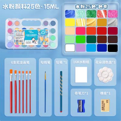 美邦祈富 水粉颜料儿童无毒水彩画套装 水粉25色15ml 12件 轻松水洗