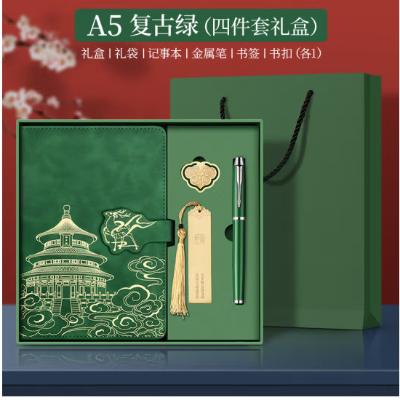 国潮 笔记本本子套装 故宫书签 A5复古绿