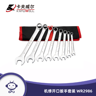 | 包装清单: | 卡夫威尔 汽修铬钒钢梅花开口两用扳手组 机修开口扳手套装 呆扳手组套 8件套两用扳手组 WR2986 |