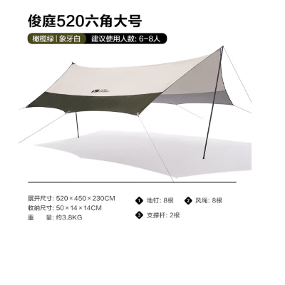 | 包装清单: | 牧高笛(MOBIGARDEN)六角天幕户外遮阳防晒沙滩帐篷防雨遮阳棚露营凉棚升级版天幕帐篷 NX20661025 橄榄绿/象牙白 |