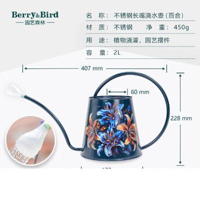 | 包装清单: | Berry&Bird 长嘴浇花水壶家用花卉盆栽多肉洒水壶高颜值园艺摆件2L 长嘴2L洒水壶-百合+花洒头 |