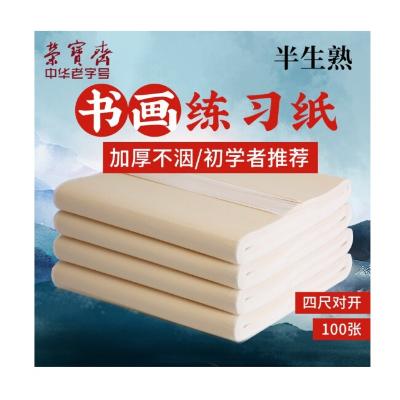 荣宝斋 宣纸 毛笔字墨汁半生半熟宣纸 毛边纸 四尺对开/100张