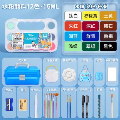 美邦祈富 水粉颜料儿童无毒幼儿园可水洗 初学者画画工具全套 12色15ml 22件套 轻松水洗