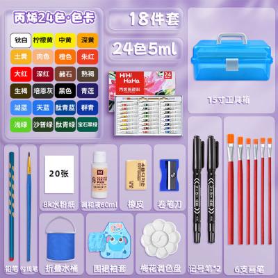 美邦祈富 丙烯颜料小盒装套装挤压式无毒防水防晒彩绘涂鸦绘画画画不掉色材料 24色5ml 工具箱套装