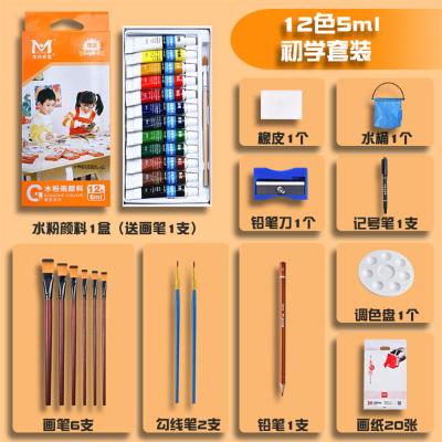 美邦祈富 水彩水粉颜料套装初学者小盒便捷绘画管状颜料可水洗调色盘工具 水粉12色5ml 初学套装