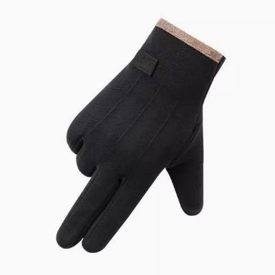 男冬季德绒保暖加绒加厚骑行手套 触屏三线男款【黑色】