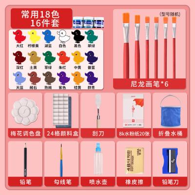 美邦祈富 水粉颜料套装美术生专用画画 大容量罐装可水洗颜料 18色送16件套