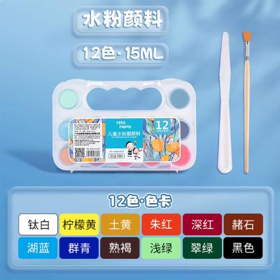 美邦祈富 水粉颜料儿童无毒幼儿园可水洗 初学者画画工具全套 12色15ml 2件套 轻松水洗