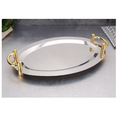 彩塘 加厚不锈钢商用餐盘 水果盘带耳托盘 20寸椭圆盘