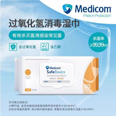 麦迪康 过氧化氢消毒湿巾大尺寸物表清洁消毒杀菌酒精【整箱】60抽*12包