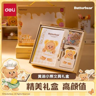 得力(deli)黄油小熊套装 7件套 萌趣可爱软抄本+中性笔+卡通贴纸包+便签本 HY071