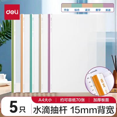 | 包装清单: | 得力(deli) 5只装 学科分类拉杆夹 A4/15mm文件夹水滴杆抽杆夹 试卷夹资料收纳资料册 PP653-15 |