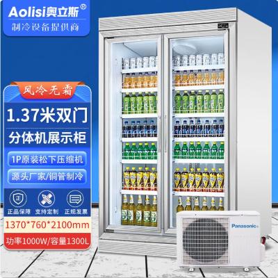 奥立斯 分体机冰柜商用冷藏展示柜 大容量风冷冰箱冷饮陈列柜 银色双门分体 1.37米(带门把手)