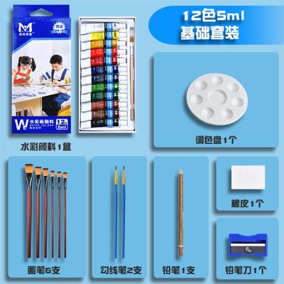 美邦祈富 水彩水粉颜料套装 初学者小盒便捷画画管状颜料可水洗 水彩12色5ml 基础套装