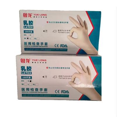 粤龙 乳胶检查手套 白色 100只/盒 L