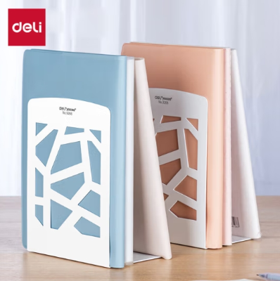 得力(deli) 9268 6.5英寸(高16cm)创意镂空铁桌面书立 2片 白色
