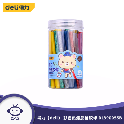 | 包装清单: | 得力(deli) 彩色高粘性热熔胶枪胶棒胶条55支装7mm*100mm ROHS认证 DL390055B |