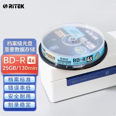 铼德(RITEK)BD-R 蓝光光盘 ISO/IEC16963 空白光盘6x 原装25G 10片桶装