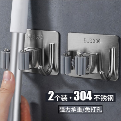 | 包装清单: | 世明 拖把挂钩 304不锈钢扫把挂钩 免打孔拖把夹挂卡扣 2个装 |